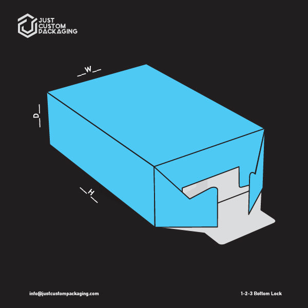 1-2-3 bottom boxes are an excellent means of housing retail products as they increase their value and beautify their overall appeal. Because of their impeccable features and numerous benefits, retailers use them to showcase a variety of products. They are versatile and can easily be tailored to fit into a retail setting. At Just Custom Pcakging, we customize these boxes to meet the demands of our clients.